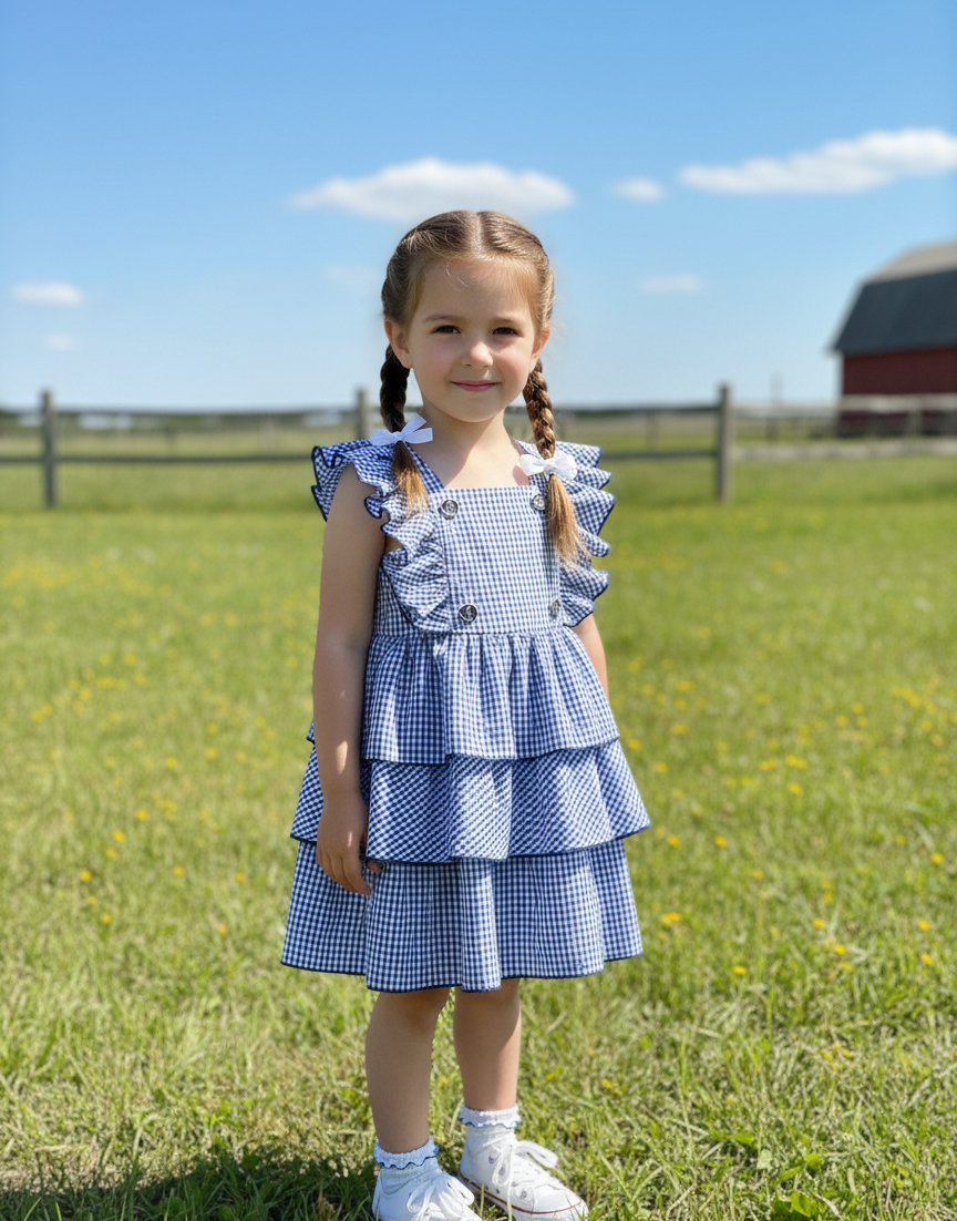 💚Vestido de cuadro vichy azul con botones de ancla .💚