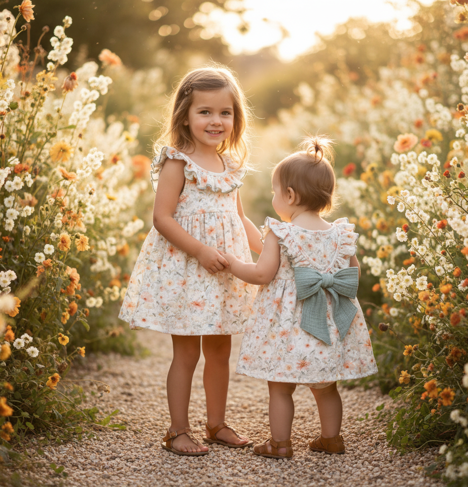 💚Vestido algodón con volantes en hombros moñita en la espalda.💚